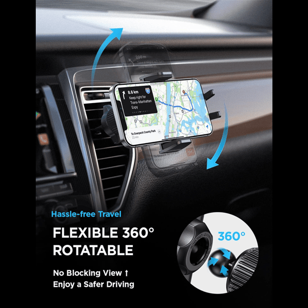 - [360-Degree Adjustable View Angle] The 360-degree rotatable head will provide you with the best viewing angle, so you can see the phone screen clearly and keep secure driving rather than be limited by view angle or an unwieldy phone holder for the car.